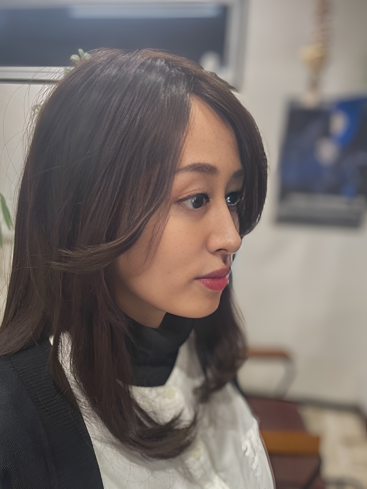 顔まわりの前髪も作りたいとのご希望でしたので、来店時にお客様の目や口元のバランスを見ながらカットさせて頂きました。